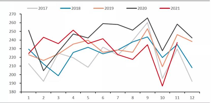 中國生鐵日均產(chǎn)量情況走勢圖(單位:萬噸)
